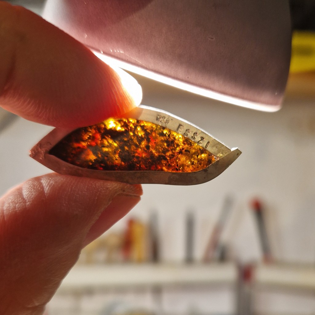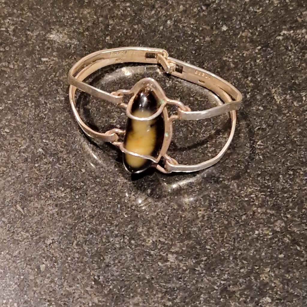 Egentillverkad armband i 925 silver med bärnsten köpt i Gdansk