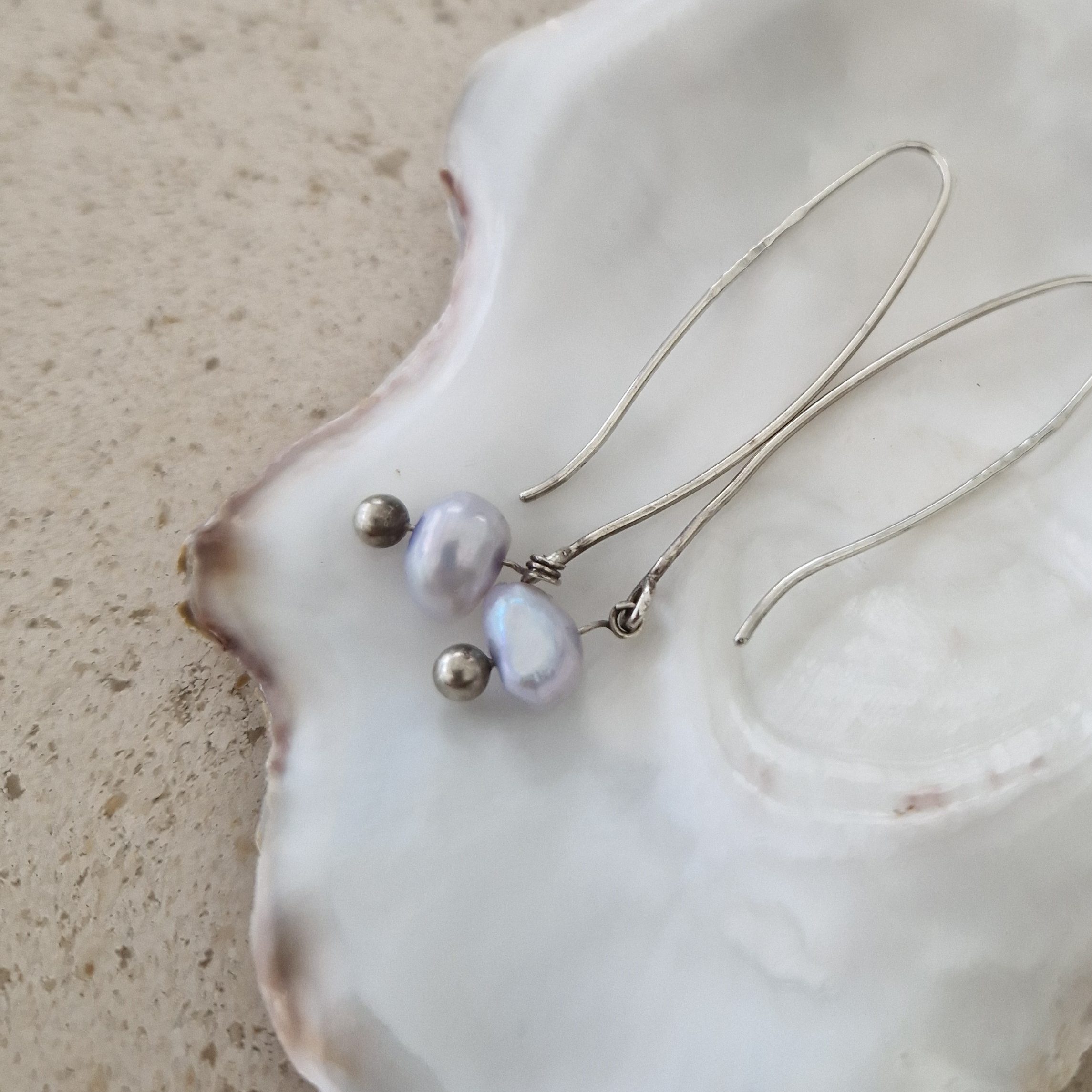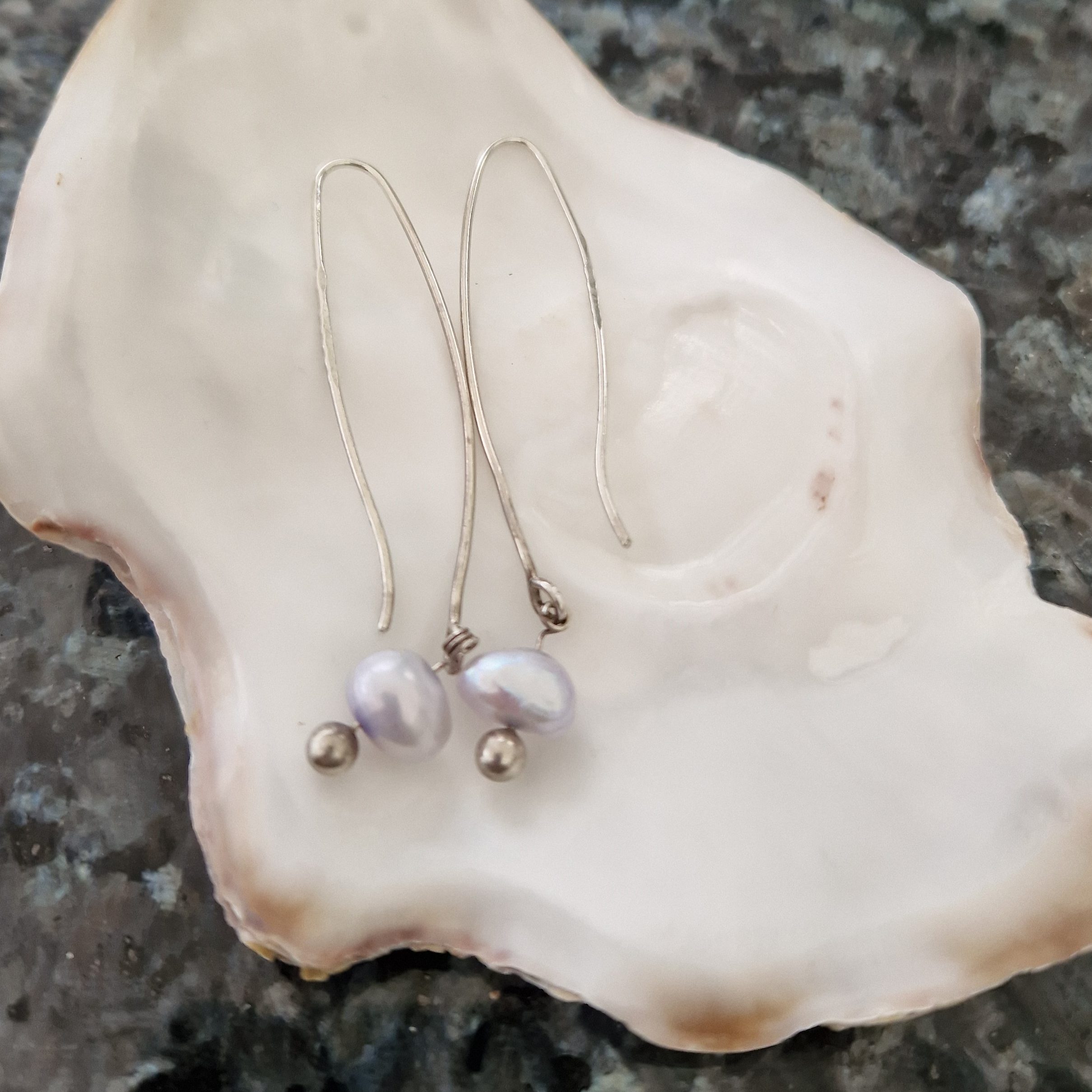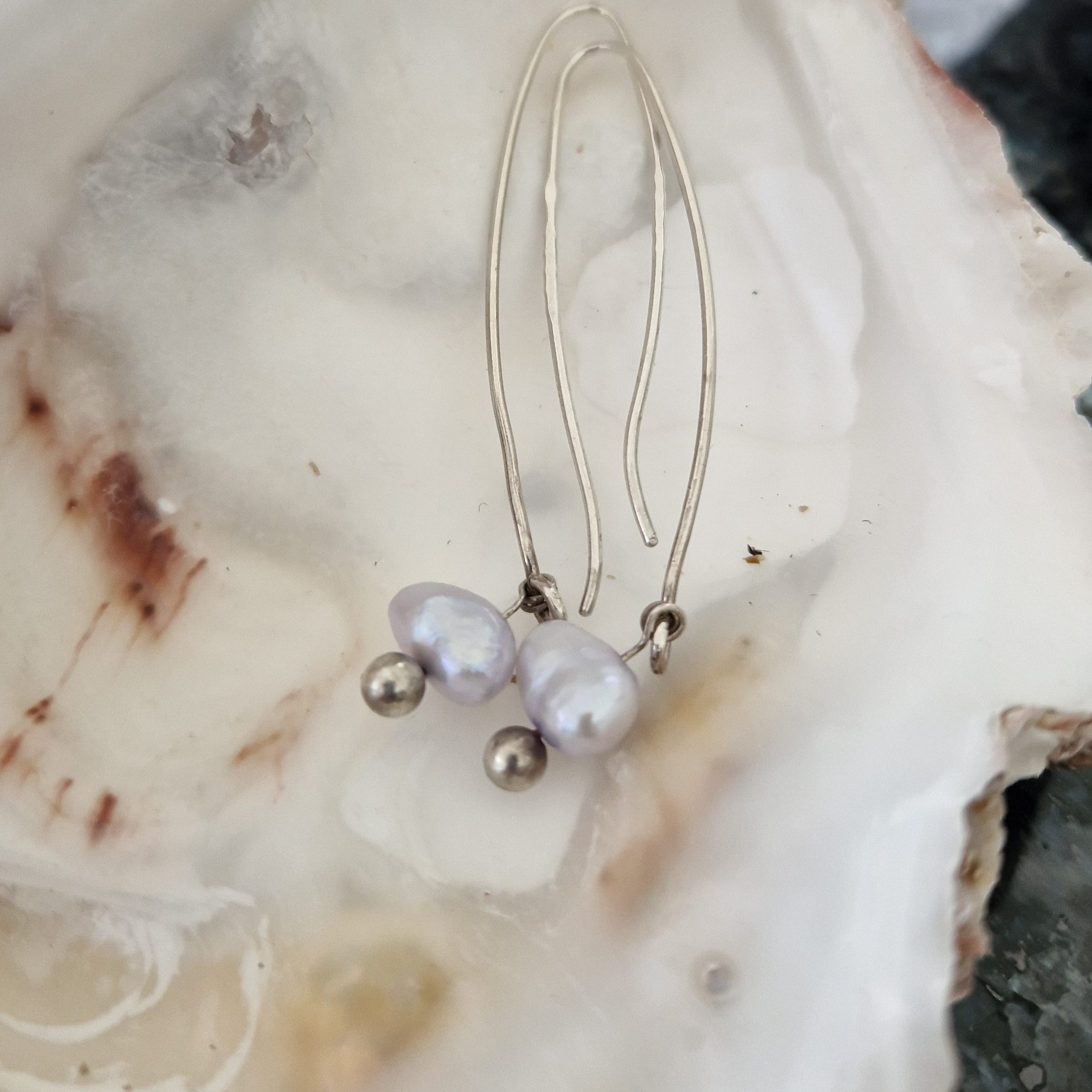 Silverörhängen med sötvattenspärlor, liknande örhängen kan göras på beställning, pärlor finns tillgängliga i olika storlekar och färgnyanser