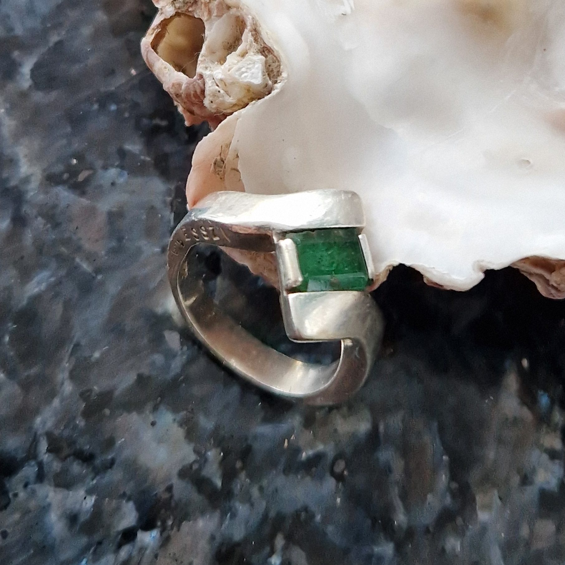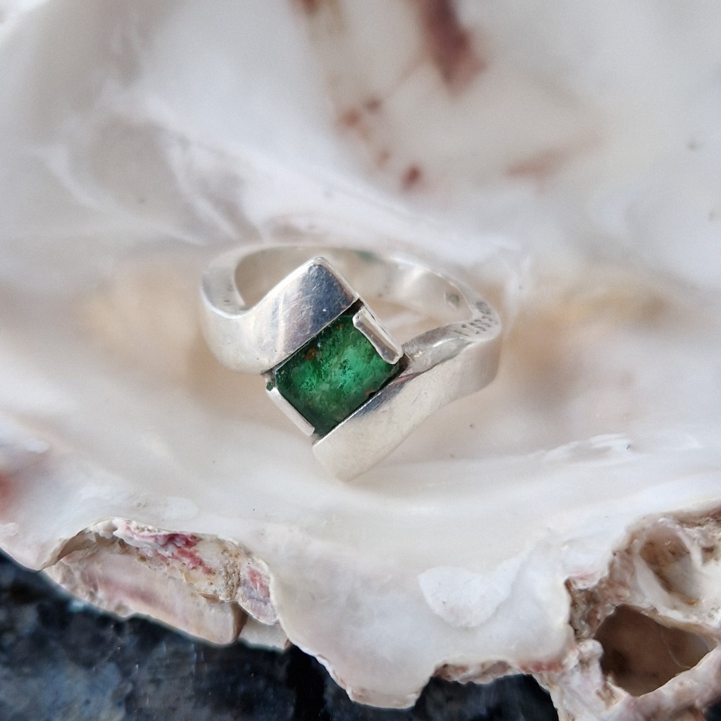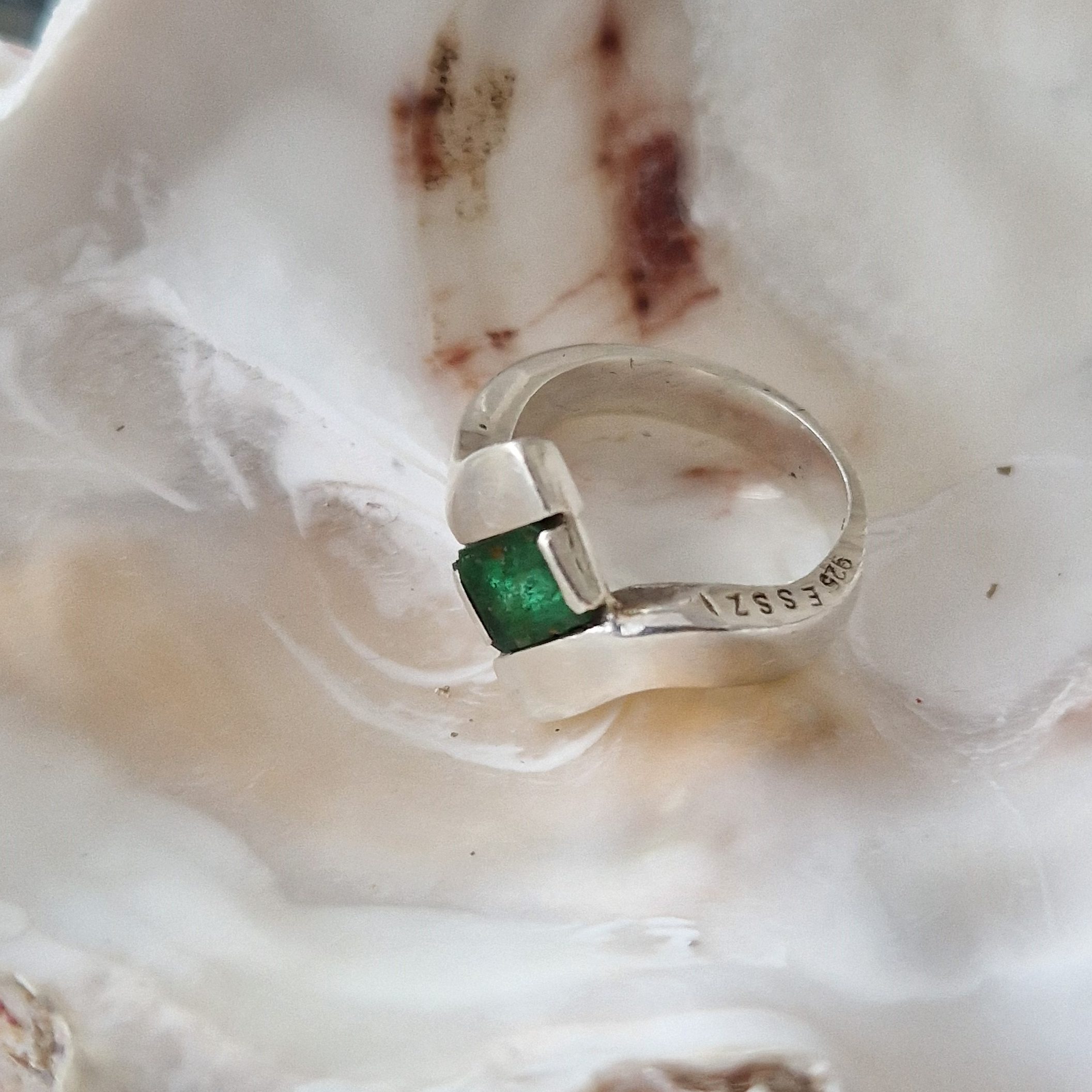 Silverring med smaragd sten från Colombia, liknande ring kan göras på beställning men sten måste köpas in enligt överenskommelse