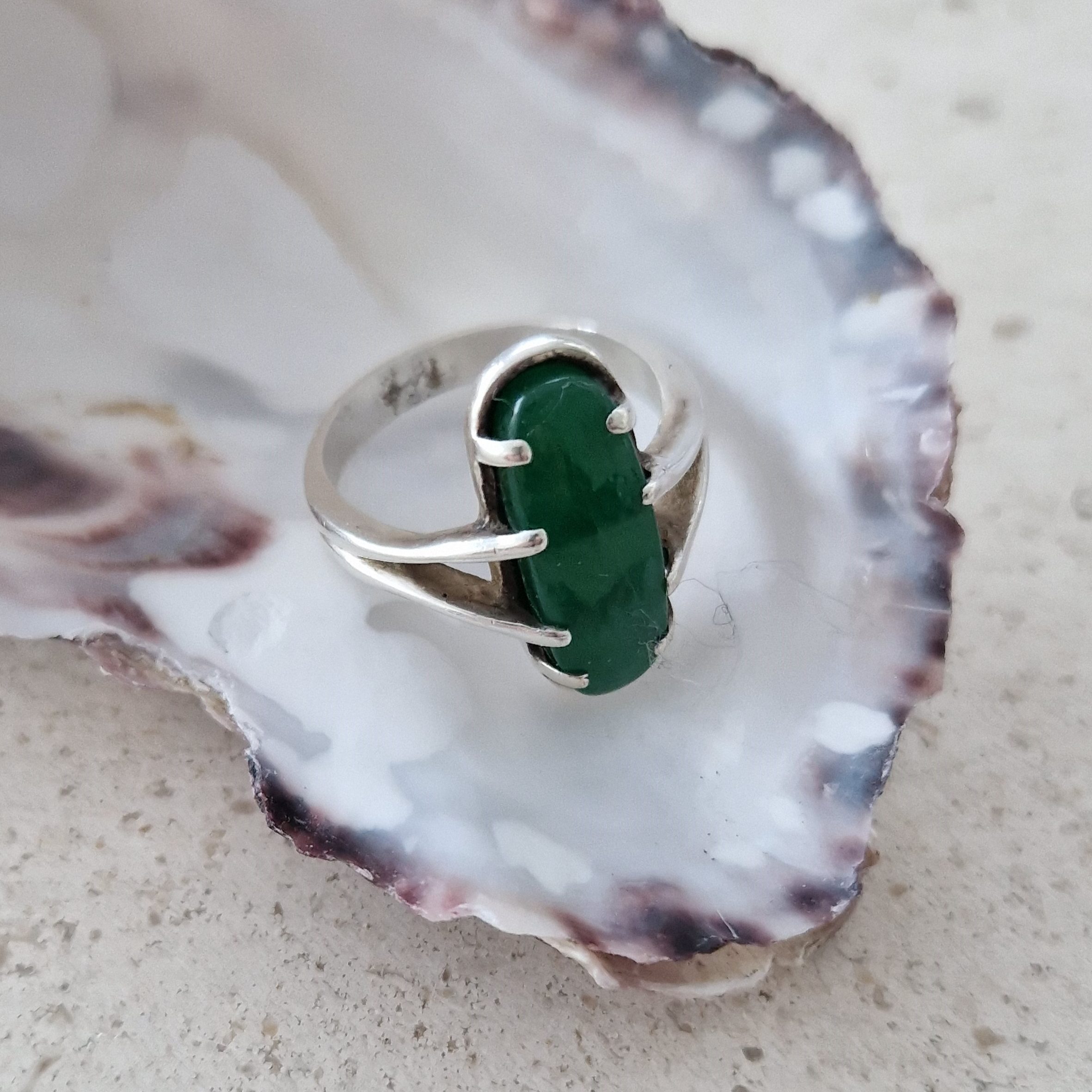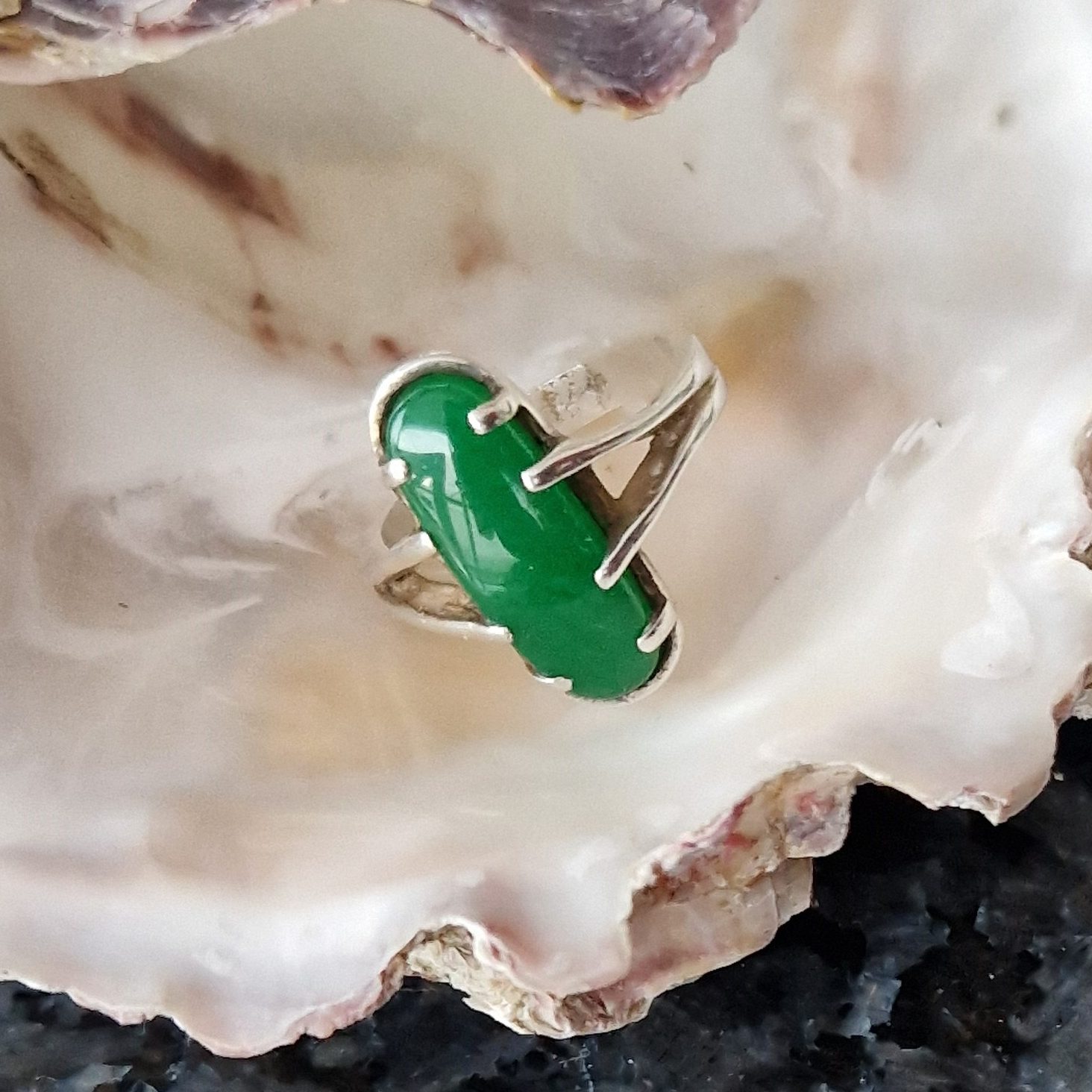 Silverring med jade sten köpt i Kina, liknande ring kan göras på beställning men sten måste köpas in enligt överenskommelse