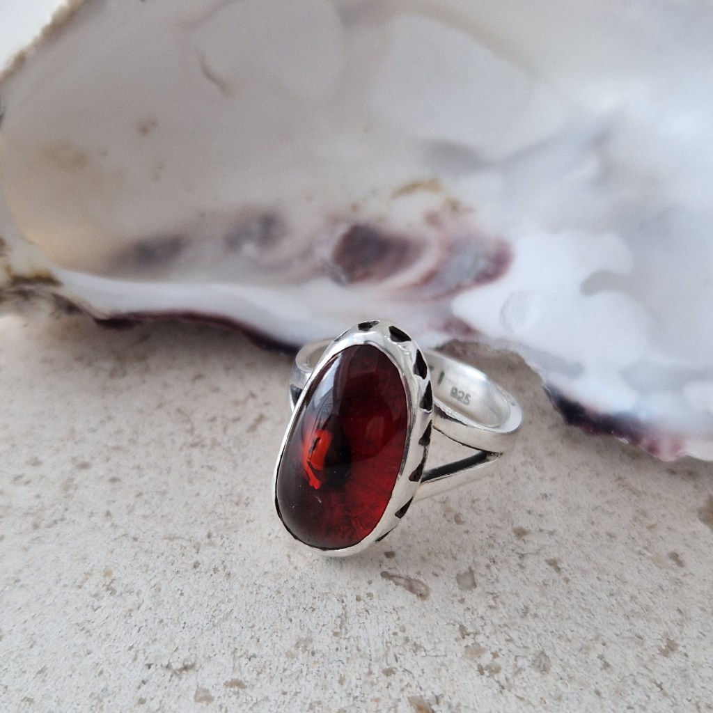 Silverring med bärnsten